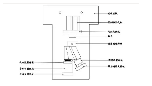 1、上圖是試氣工裝的參考圖,具體結(jié)構(gòu)需依據(jù)產(chǎn)品的實際結(jié)構(gòu)來設(shè)計,思路就是用盡可能簡單的方式密封產(chǎn)品,讓需檢測密封的部分充滿氣體來確認其密封性;